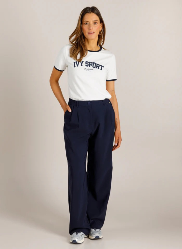 VJENNA | OFF WHITE/NIGHT BLUESPORTIEF MET EEN KNIPOOG. DIT OFF-WHITE T-SHIRT VALT OP DOOR DE CONTRASTERENDE DONKERBLAUWE BIEZEN EN DE PRINT OP DE BORST. DE ZACHTE KATOENMIX DRAAGT PRETTIG EN BEWEEGT MAKKELIJK MEE. IDEAAL OM CASUAL TE COMBINEREN MET DENIM OF…